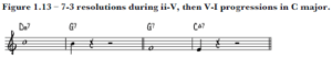 The term 7-3 resolution refers to the musical resolution accompanying the melodic movement from the 7th of one chord to the 3rd of another. In jazz, this occurs at typical cadence points such as ii-V or V-I.