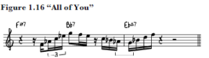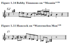 All three of the previous figures demonstrate Hancock’s use of change running, with similar phrases being found over similar progressions. In Figure 1.5, Hancock uses numerous examples of change running.