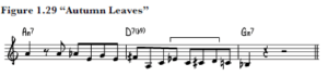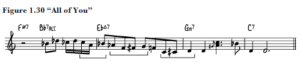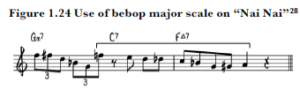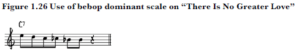In Figure 1.25, Hancock plays a simple bebop minor scale phrase in bar 2. He uses a similar phrase in Figure 1.26, this time using the bebop dominant.