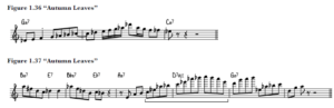 Both Figure 1.54 and Figure 1.55 involve blues-orientated material typical of the hard-bop era, and each phrase is of a similar length and nature.
