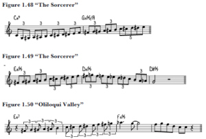 Similarly, in Figure 1.51, Hancock plays a long, chromatically descending line over the underlying shifts in harmony.